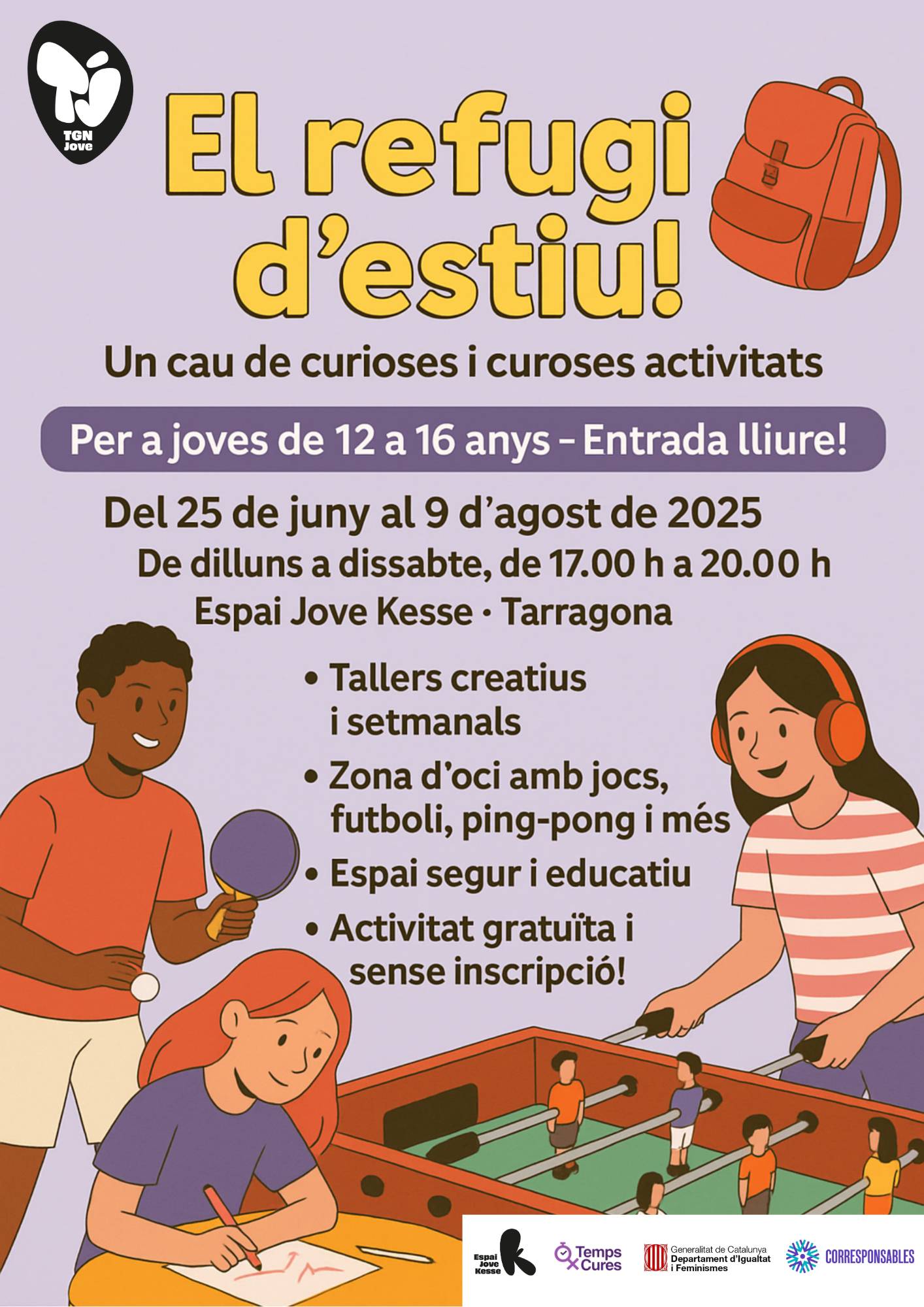 Espai lliure, creatiu i educatiu per a joves de 12 a 16 anys. L’espai estarà obert cada tarda de dilluns a dissabte per a un màxim de 15 participants simultanis, amb accés lliure amb la Targeta Kesse, amb l’objectiu de garantir un espai segur, educatiu i d’acompanyament durant el període de vacances escolars.