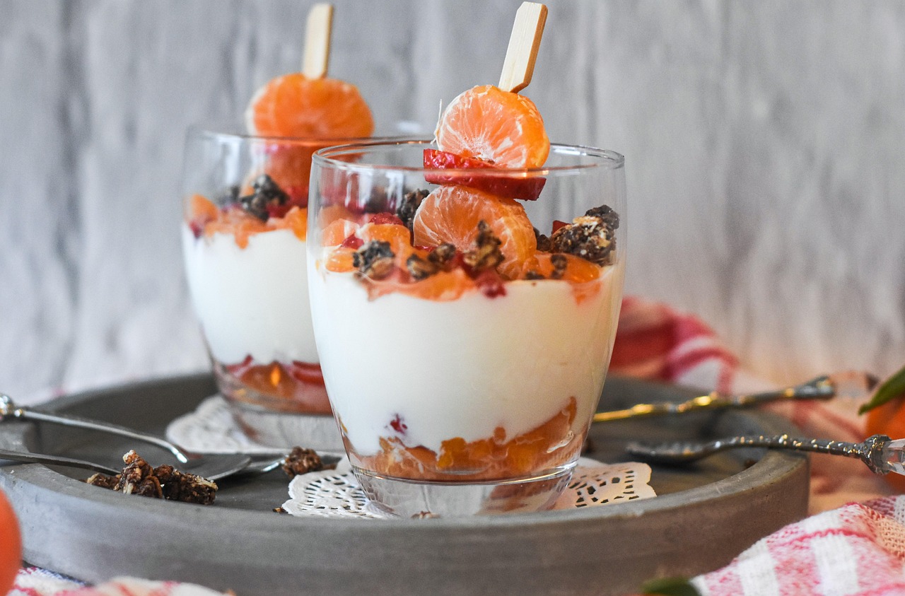Púding de xia, got saludable de fruita i iogurt, mousse de xoco.