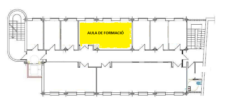 L’aula de formació de l’espai jove Kesse està ubicada en la tercera planta de l’edifici. És una aula molt espaiosa i està destinada per a fer xerrades, taules rodones, reunions o tallers amb un gran nombre de participants. Està molt ben equipada per a poder fer exposicions amb projector..