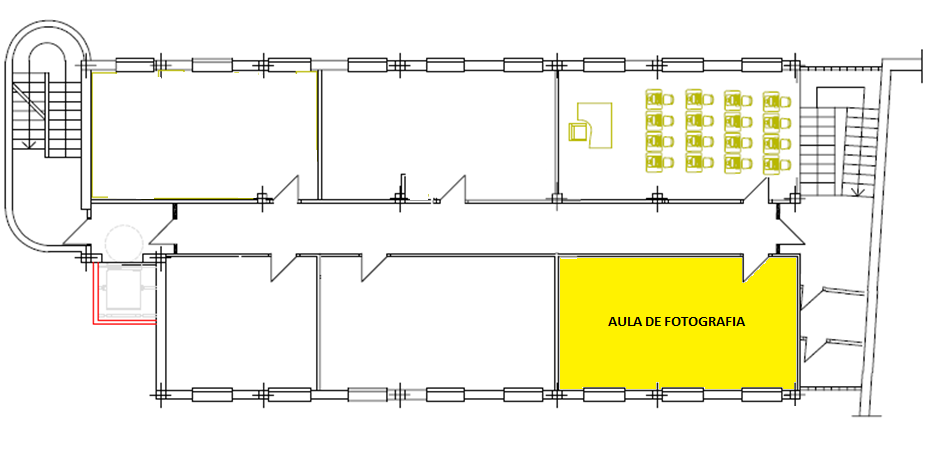 L’aula de fotografia de l’espai jove Kesse està ubicada en la segona planta de l’edifici. Aquesta aula està molt ben equipada amb diferents materials de fotografia. Disposa de 3 tipus de fons que els usuaris poden fer servir segons les seves necessitats. Per poder tapar la llum que entra per les finestres hi ha penjades 2 cortines negres opaques.