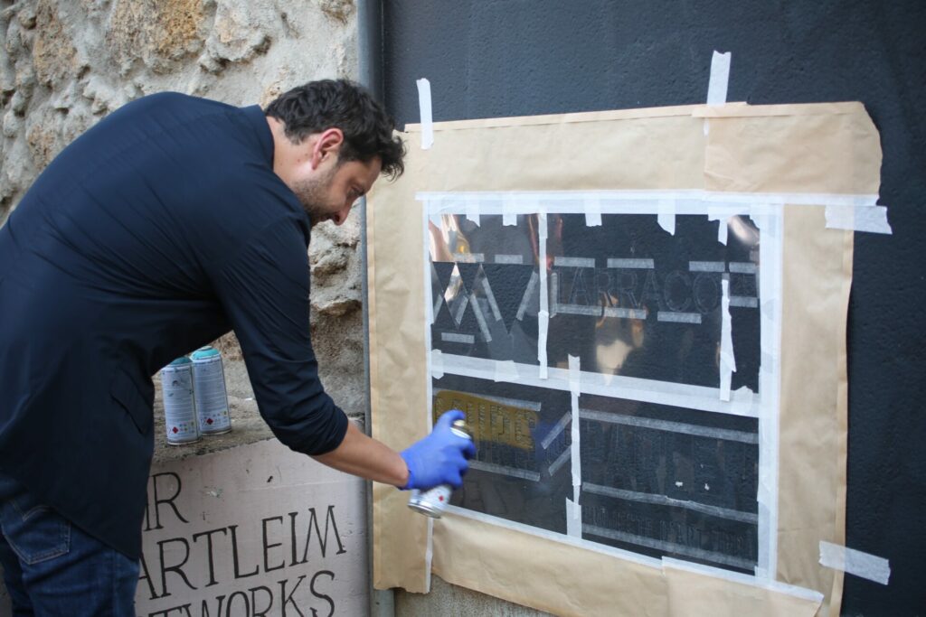 L’obra, ubicada a la façana posterior de l’edifici de l’IMSST, forma part del projecte Murs que Parlen